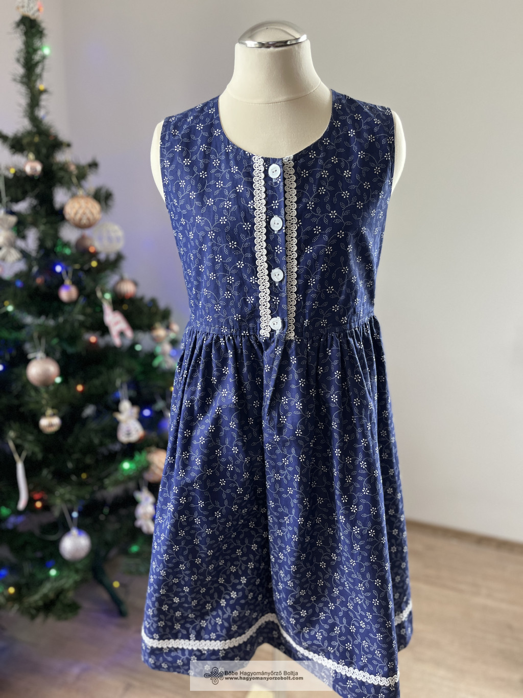 Gyönyörű, elöl gombos, elegáns, légcsipkével díszített kislányruha.