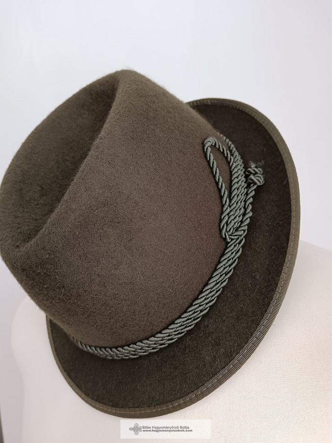 Fonott zsinór díszítéssel: Ez a vadászkalap gyönyörű fonott zsinór díszítéssel rendelkezik, ami egyedi megjelenést kölcsönöz neki. A díszítés a hagyományos vadász stílust idézi fel, és kifinomult eleganciát kölcsönöz a kalapnak.