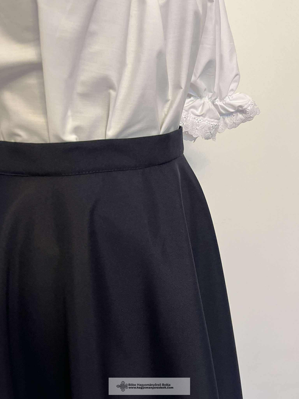 A kétoldalas, dupla falú körloknis lapszoknya sokoldalú, látványos és tartós darab, amelyet néptáncosok és hagyományőrzők egyaránt imádnak. Sötétkék és királykék oldalával könnyen variálható, a megkötős derék pedig kényelmes és rugalmas viseletet biztosít. Minimat anyaga könnyen kezelhető, pörgős mozgást biztosít, és bármilyen fellépéshez tökéletes választás.