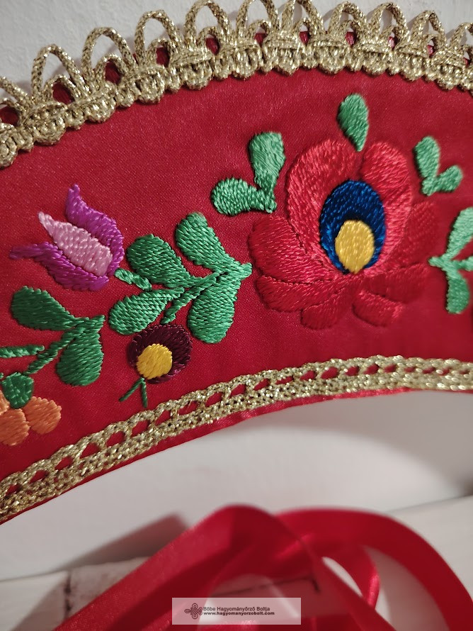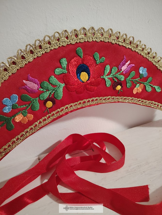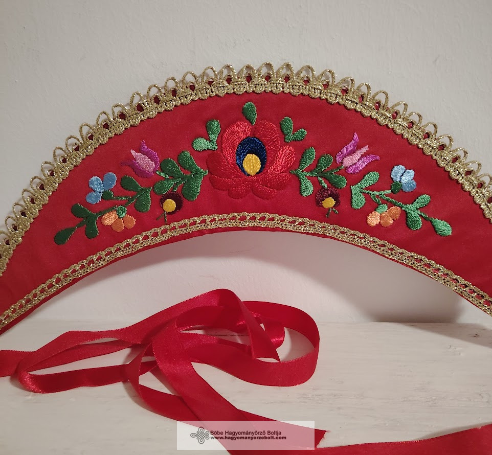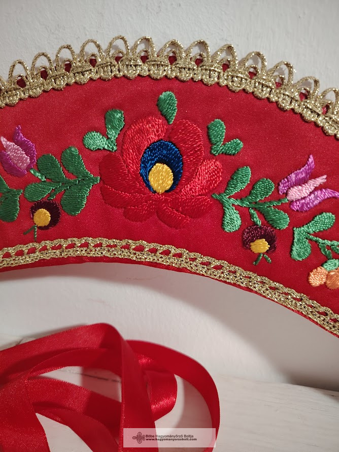 Ez a piros alapon színes hímzéssel, virág motívumokkal és csipke szegéllyel készült párta nemcsak gyönyörű, hanem egy darabka múltunk is, amit modern formában vihetünk tovább.Miért éri meg hagyományőrző pártát vásárolni?