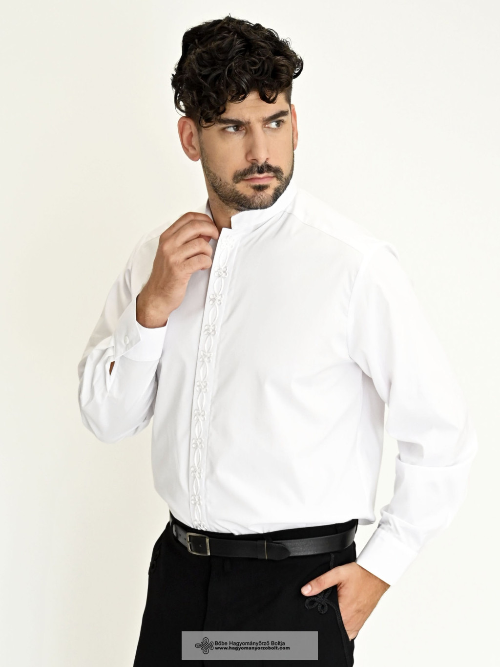 Elegáns, hagyományőrző fehér férfi ing zsinóros díszítéssel, tökéletes Bocskai zakóhoz! Esküvőre, keresztelőre, ünnepi eseményekre és hétköznapi viseletre is ideális. Kézműves munka, prémium minőség!