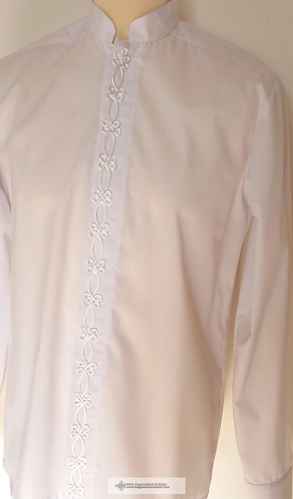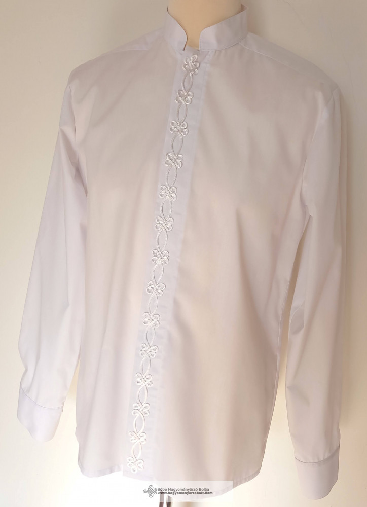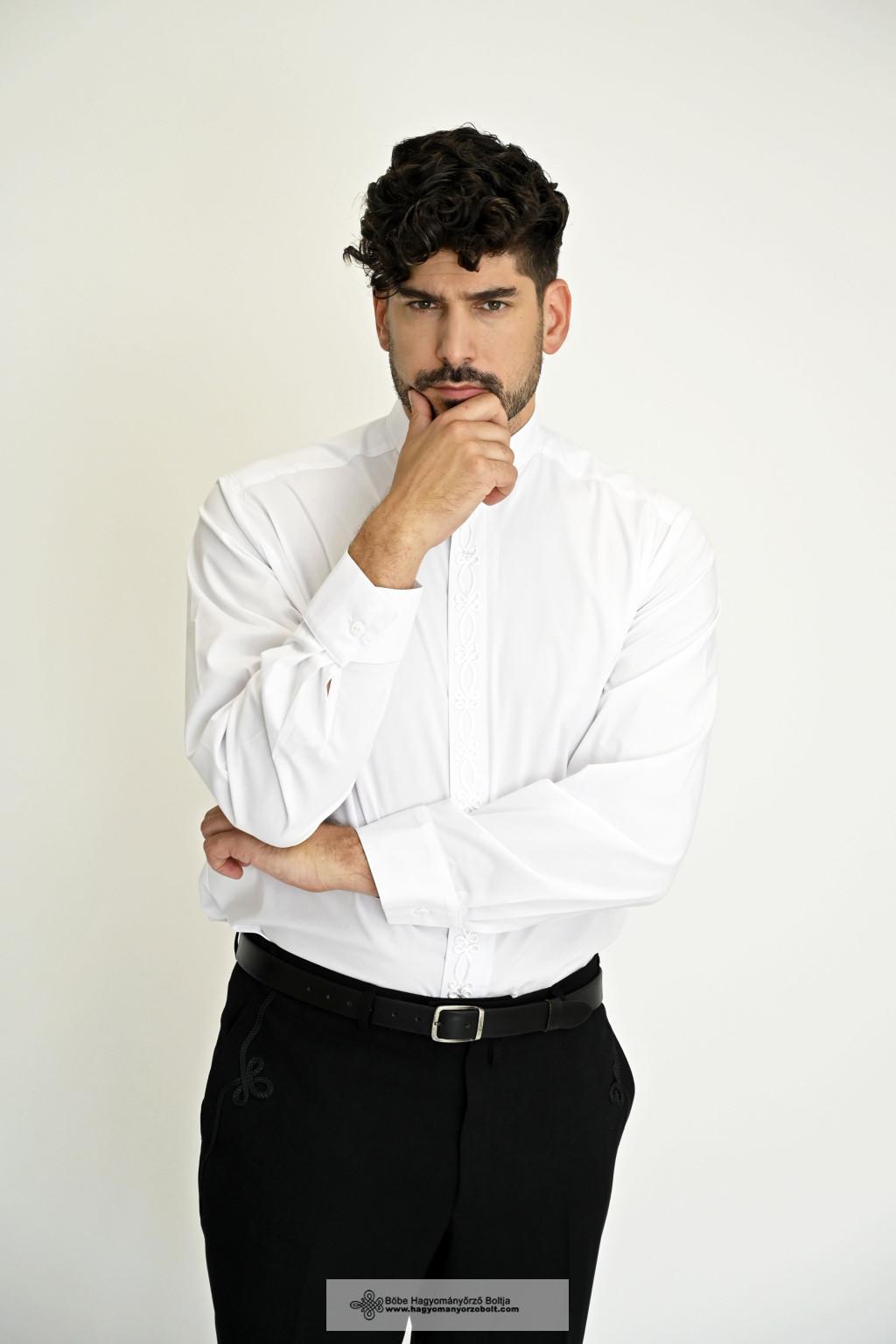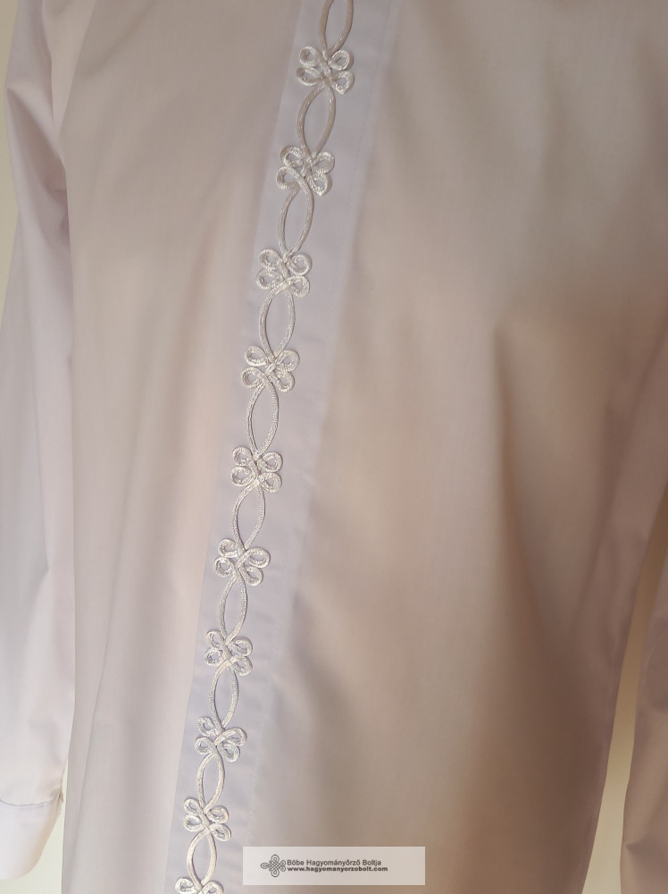 Szereted a hagyományos, magyaros viseletet, és fontos számodra az elegancia? Akkor ez a fehér alkalmi ing zsinóros díszítéssel neked készült!